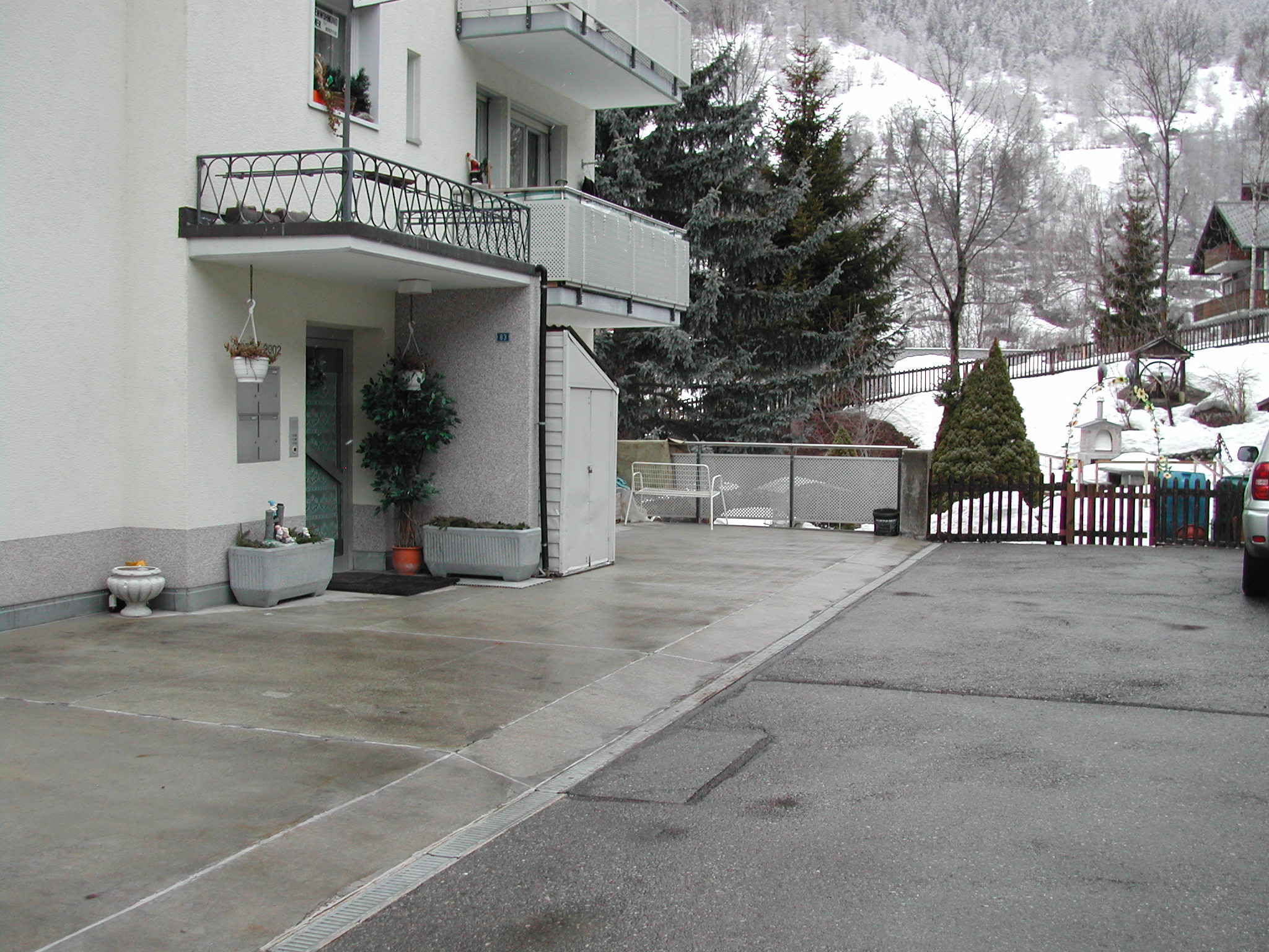 Es kann bis vor die Haustüre gefahren werden. Der Zugang zur 3 1/2 Zimmer-Wohnung ist auf der unteren Ebene. Im grossen und gepflegten Garten finden Sie eine schöne Grillstelle und